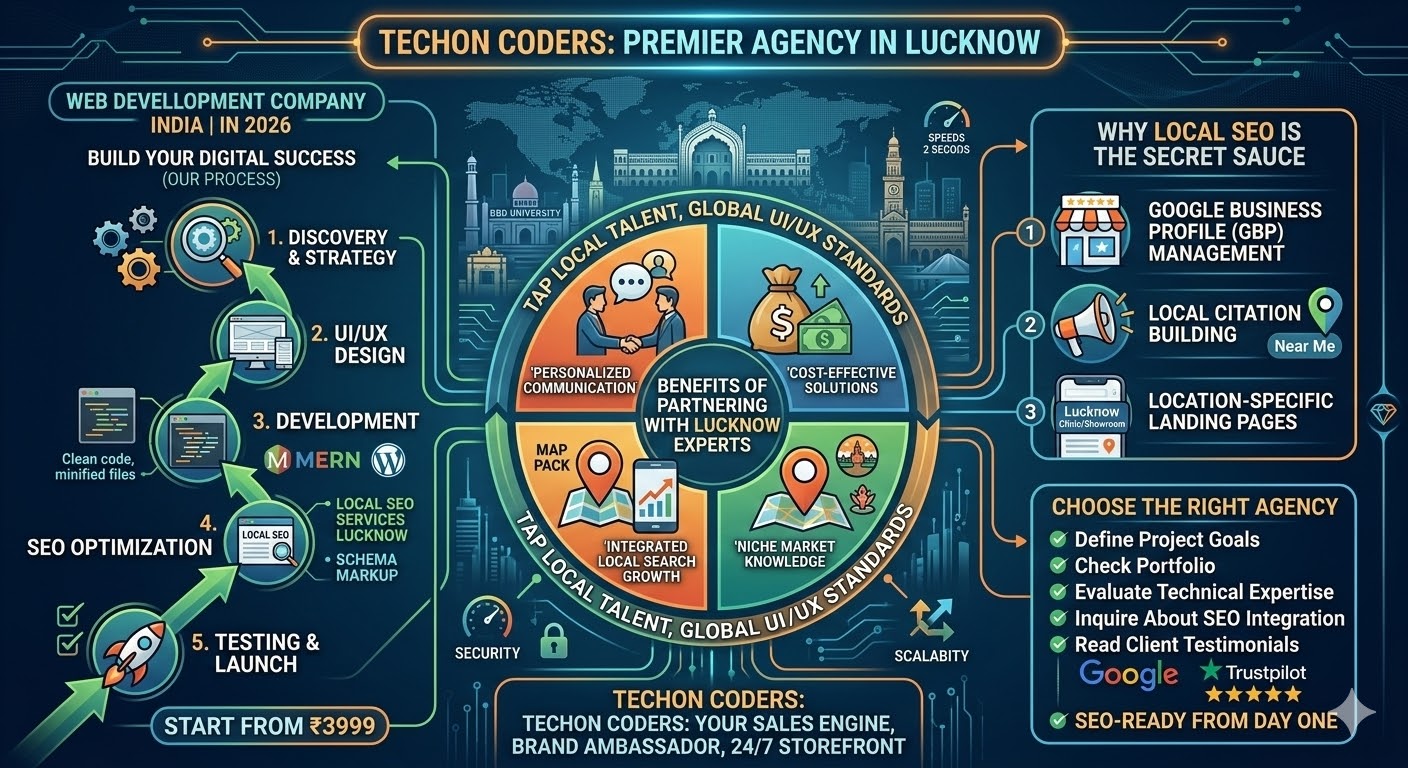At Techon Coders, we specialize in building websites that are “SEO-ready” from day one. We don’t just write code; we architect experiences. From integrating Local SEO services Lucknow to ensuring your site loads in under two seconds, our approach is holistic.